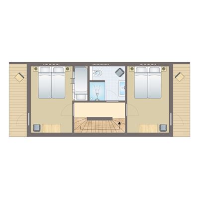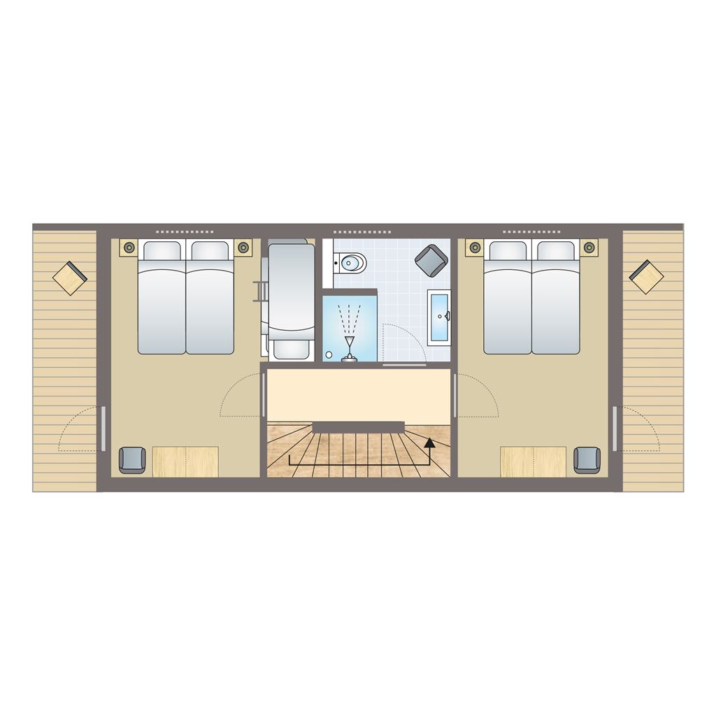 - Bathroom with shower cubicle, double washbasin and toilet on the first floor