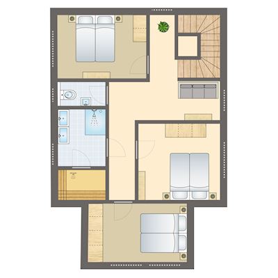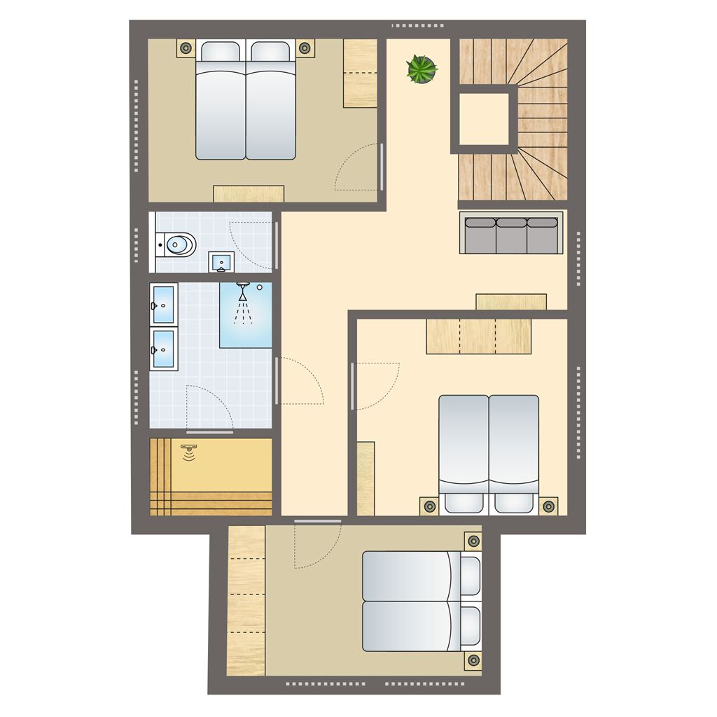 - Bathroom with walk-in shower and double washbasin on the first floor