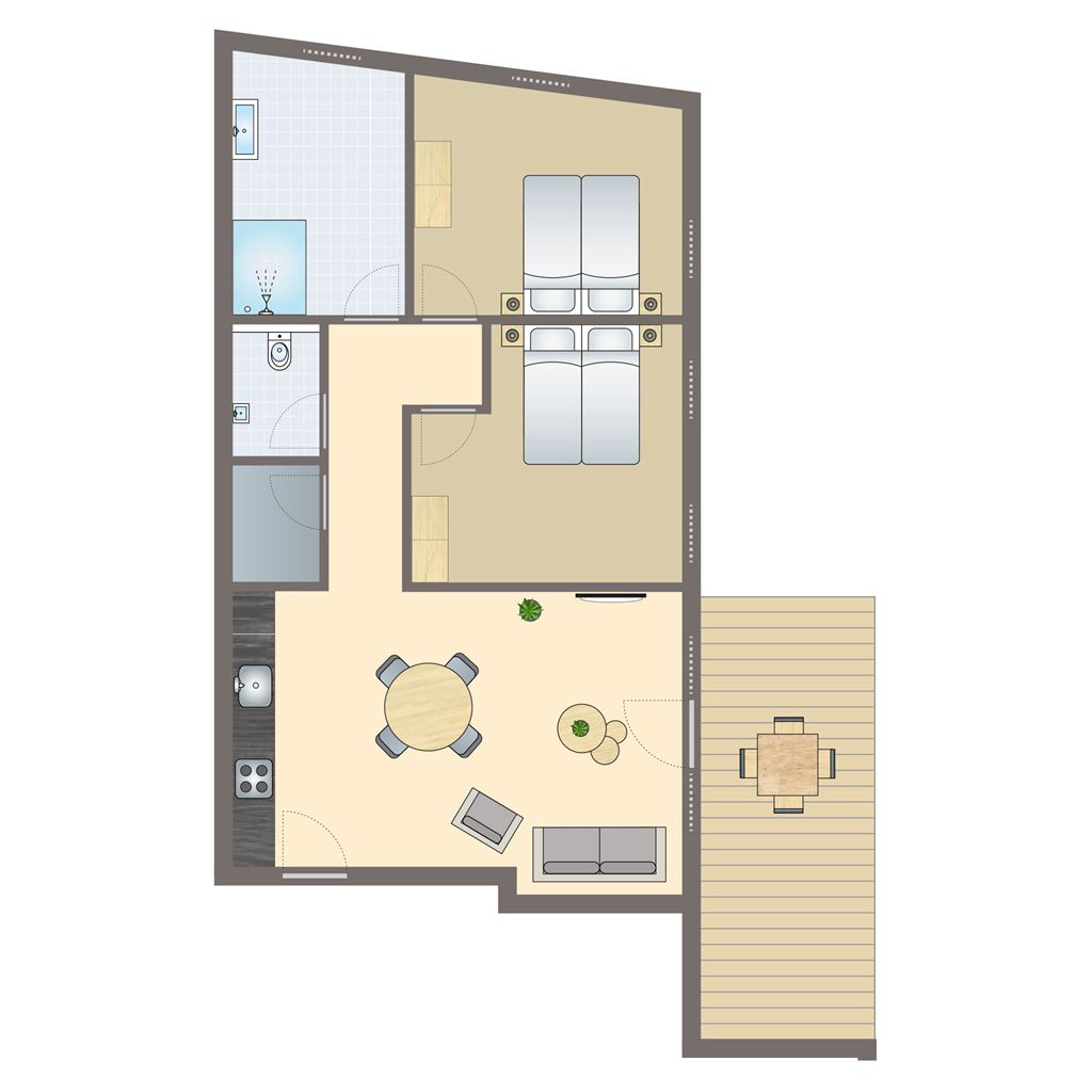 - Two bedrooms with a double box spring bed and soft mattress topper