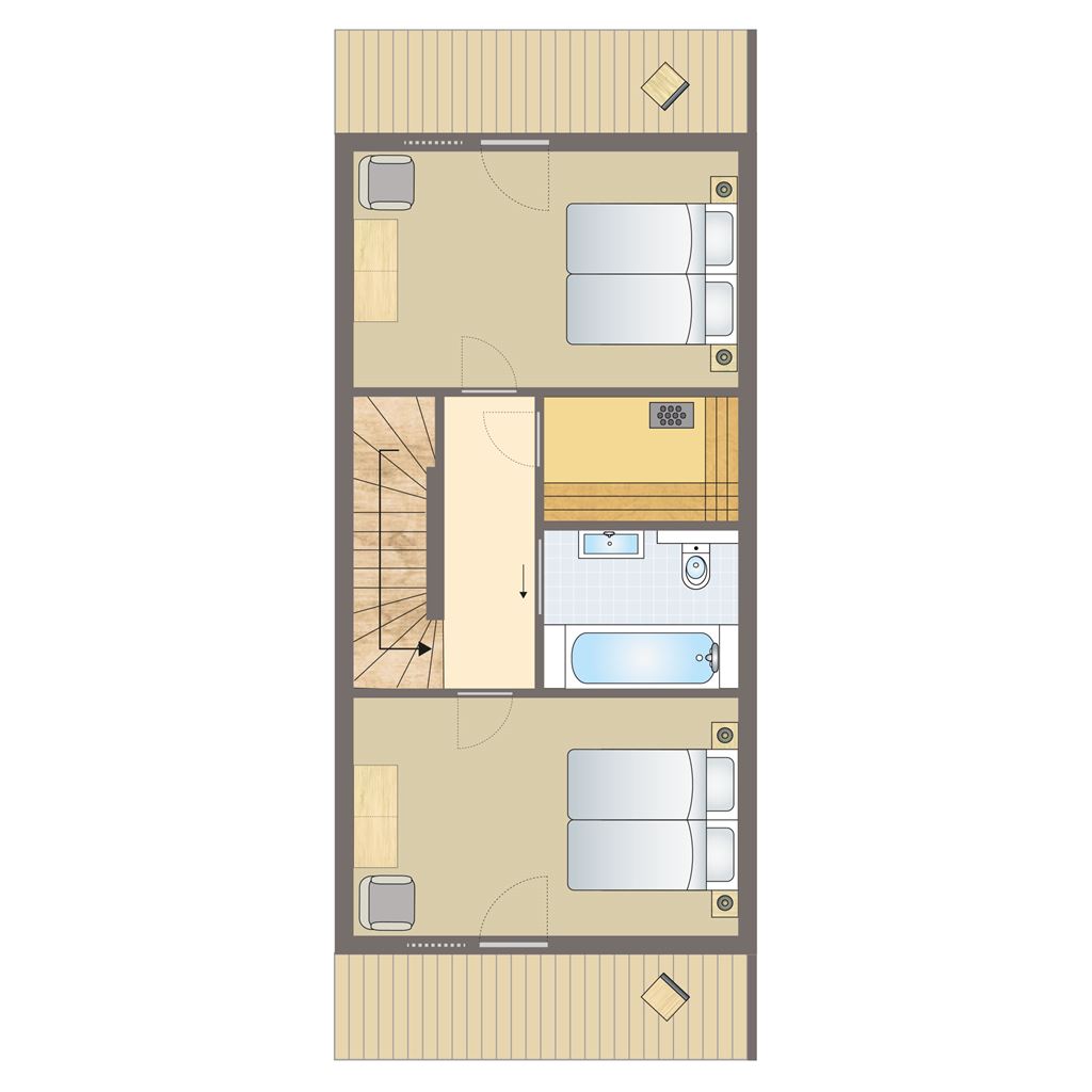 - Two bedrooms with a double box spring bed and soft mattress topper
