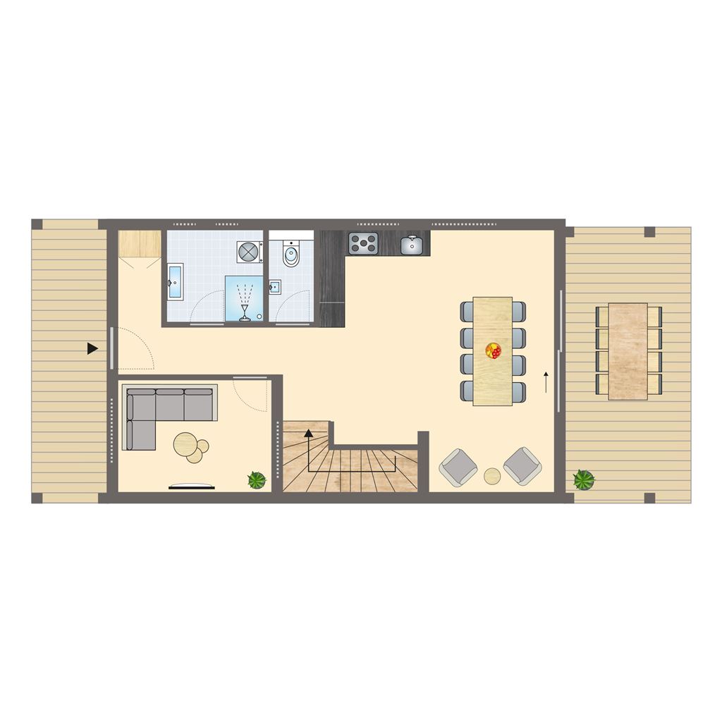 - Bathroom with rain shower, double washbasin and toilet on the ground floor