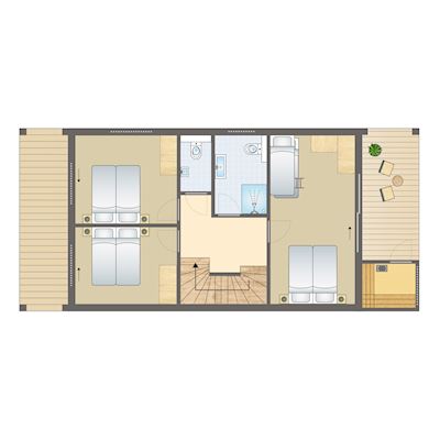 - Two bedrooms with a double box spring bed and soft mattress topper