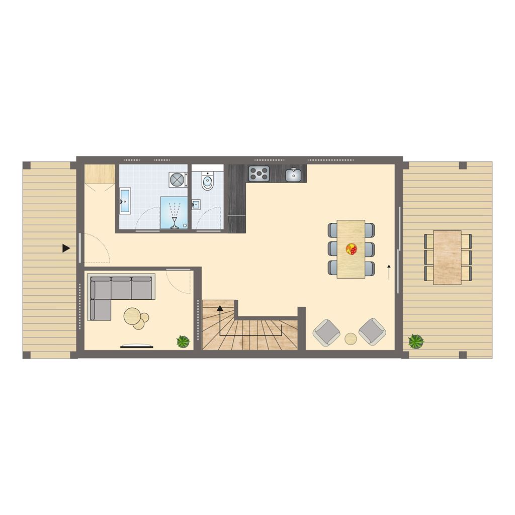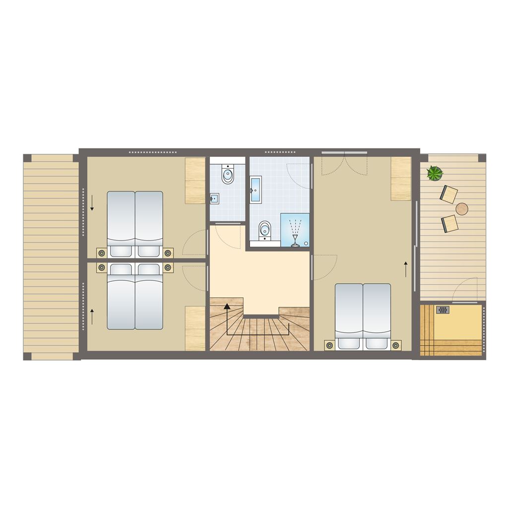 - Bathroom with rain shower, double washbasin and toilet on the ground floor