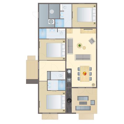 - Two en-suite bathrooms with walk-in shower, wash basin and toilet