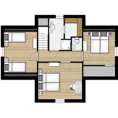 - Bedroom with two single box spring beds and flatscreen-TV on the ground floor
