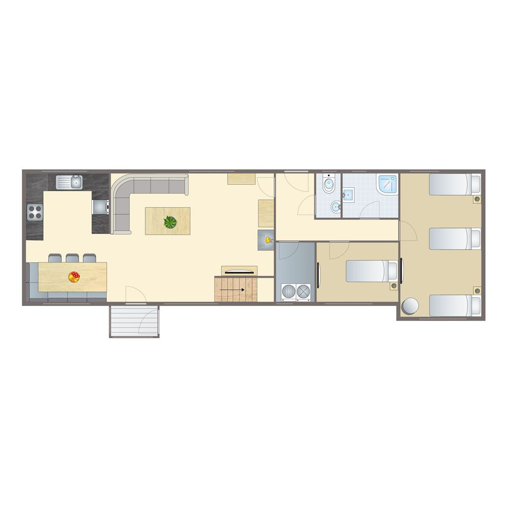 - Bedroom with triple single beds and flatscreen TV on the ground floor