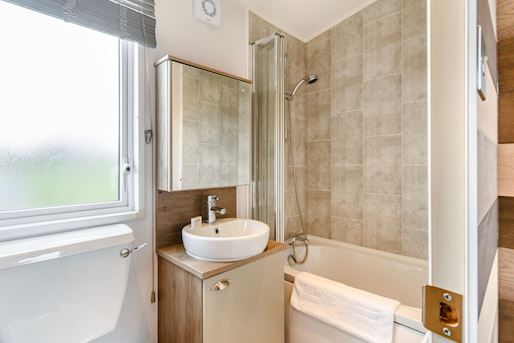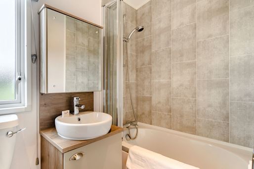 - En-suite bathroom with shower over bath, wash basin and toilet